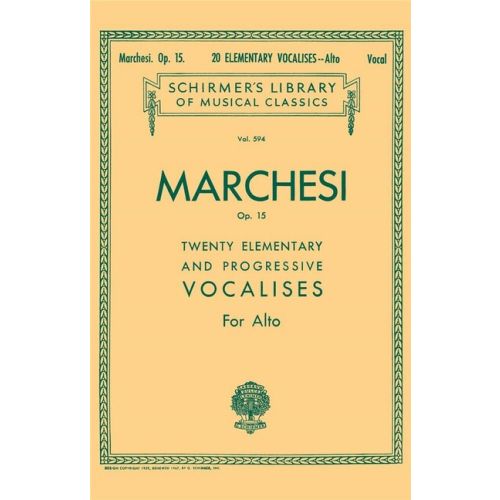 As a composer Salvatore Marchesi has published a number of settings of French, German and Italian songs, distiguished for graceful inspiration. But, he is still better known for his Twenty Elementary And ProgressiveVocalises, the ripe fruit of a long and brilliant career as a teacher of vocal art. The Vocalises may, in particular, be recommended for developing breadth and suavity of tone, together with clearness and elegance in phrasing.