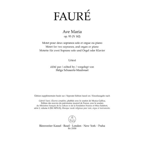 Numerous gems such as the “Cantique de Jean Racine” or the “Messe basse” are published in performing editions based on the musical text of the “Gabriel Fauré – Œuvres complètes”.
