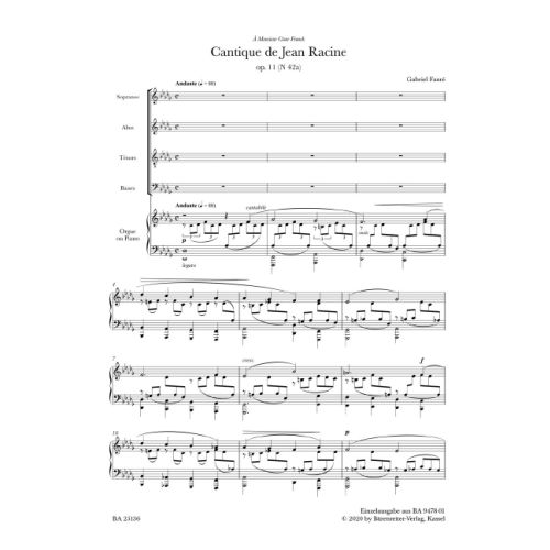 Numerous gems such as the “Cantique de Jean Racine” or the “Messe basse” are published in performing editions based on the musical text of the “Gabriel Fauré – Œuvres complètes”.
