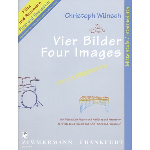 Christoph Wünsch was born in 1955. He studied piano, school music, composition, music theory and musicology. He worked on Max Reger and, in addition to his classical studies, he followed a full-length jazz course. He is professor for music theory at the University for Music Wuerzburg and directs the Studios for New Music there. Christoph Wünsch, who is also a pianist specialized in new music and jazz, composes and arranges for a variety of settings including live electronics, theater, radio plays, music for silent movies and music for children. In all the movements of the "Four images for Flute and Percussion", both instruments share an equal partnership. The four movements are called "Dialogue - Meditation - Tambour (theme with variations) - Paranoia (sic!). A performance of the separate images is possible; if played as a whole, though, the sequence should not be changed. Percussion instruments needed: 5 temple blocks, 4 tom toms, snare drum, Hi-hat, crash cymbal, ride cymbal and tambourine.