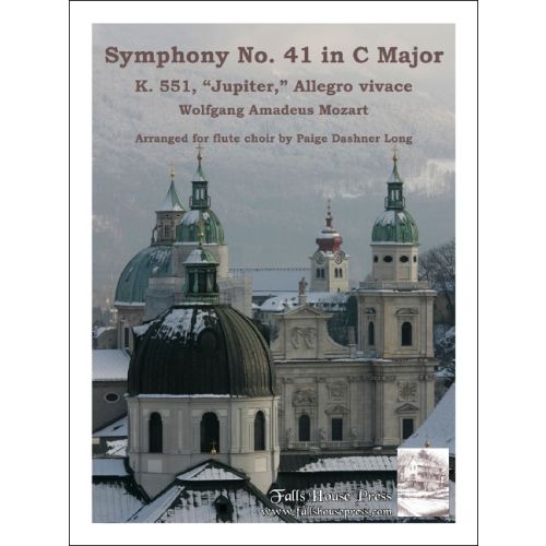 This arrangement of Mozart’s magnificent final symphony is scored for flutes 1-4, alto flute, bass flute, with optional contrabass flute. It features many optional divisi sections in the concert flute parts, as well as the alto flute parts. It is possible to perform this arrangement with only one player per part, but the harmonic support for the flute 3 melodic content will be missing, and you will need two flutists on Flute 3 to best perform this arrangement. This publication is dedicated to the 2012 New England Conservatory Summer Metropolitan Flute Festival Orchestra. For advanced players.
