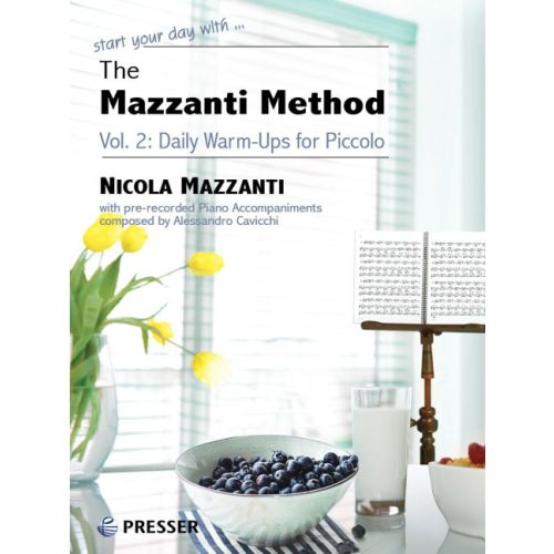 THE MAZZANTI METHOD, Vol. 2: DAILY WARM-UPS FOR PICCOLO is a compendium of 24 complete sets of studies in low notes, high notes, facility, intonation, scales, flexibility, melodic expression, and more. In addition to the 280-page book, a complete set of pre-recorded piano accompaniments (12 hours worth!) may be downloaded for free from presser.com, created by noted Italian composer Alessandro Cavicchi.