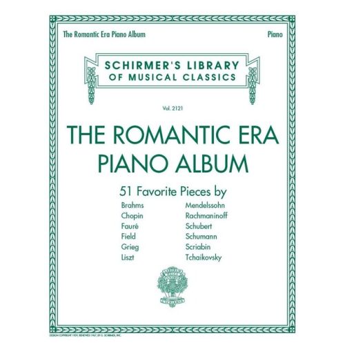 51 romantische Klavierstücke von Brahms, Chopin, Fauré, Field, Grieg, Liszt, Mendelssohn, Rachmaninoff, Schubert, Schumann, Scriabin und Tschaikowski. Enthalten sind Brahms Rhapsodie in g-Moll, Op. 76, Nr. 2, Chopins Fantaisie-Impromptu incis-Moll, Op. 66, Liszts Liebestraum Nr. 3 und vieles mehr.