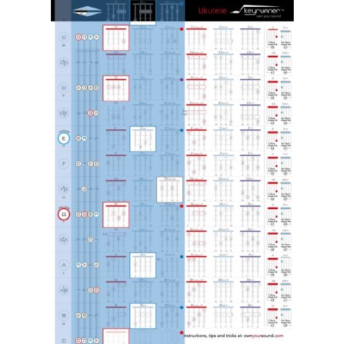 The Ukulele KeyRunner is the essential tool for the modern uke player. A beautifully designed chord chart with the KeyRunner chord finder, which allows you to select chords that work in any key you choose. The perfect companion for the beginner and the song writer alike.